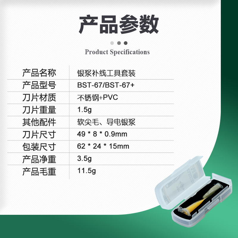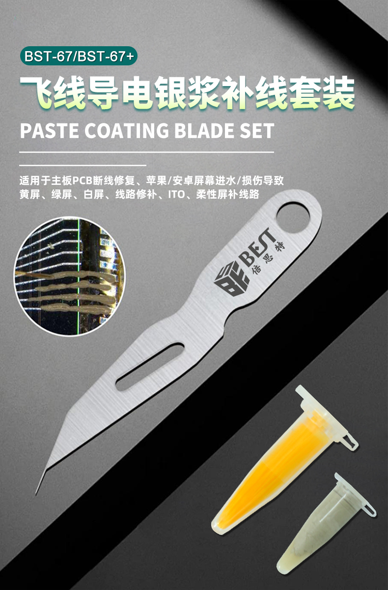 返回當(dāng)前位置: 首頁 / 產(chǎn)品中心 / BST-67+ 銀漿補(bǔ)線工具刀片套裝 特制刀片 手機(jī)屏幕維修進(jìn)水泛黃線路補(bǔ)修柔性屏補(bǔ)線刀 導(dǎo)電銀漿套裝