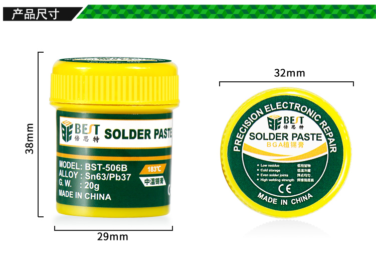 返回當(dāng)前位置: 首頁(yè) / 產(chǎn)品中心 / BST-506B 中溫錫漿 BGA植錫膏 Sn63/Pb37 20g